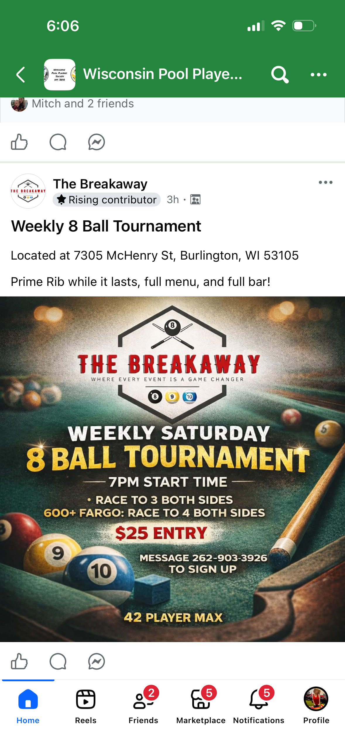 Saturdays, Singles 8-ball, The Breakaway, Burlington