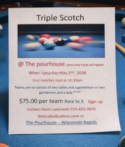 5/2 Triple scotch 8-ball, Min One Woman, Pourhouse, Wisconsin rapids