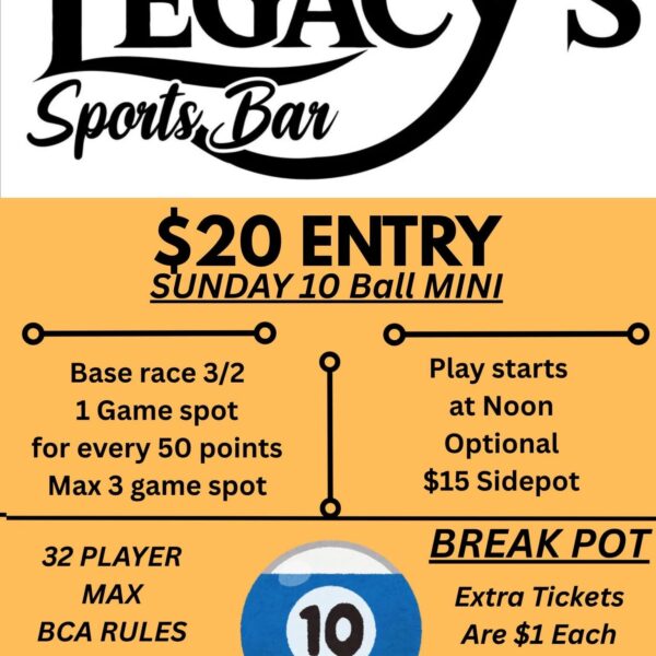 Sundays, Weekly 10-ball, The Break Room, Lyons