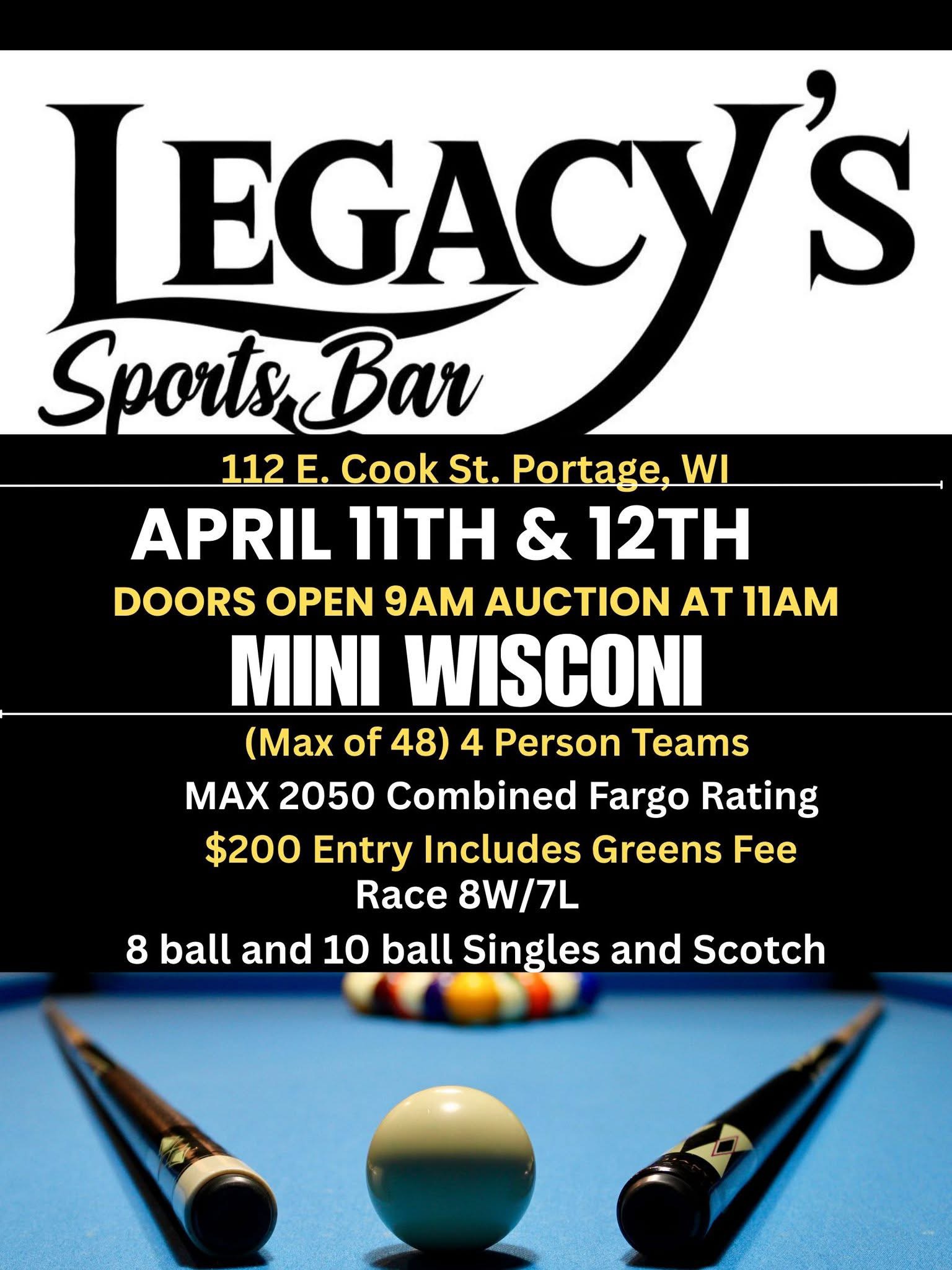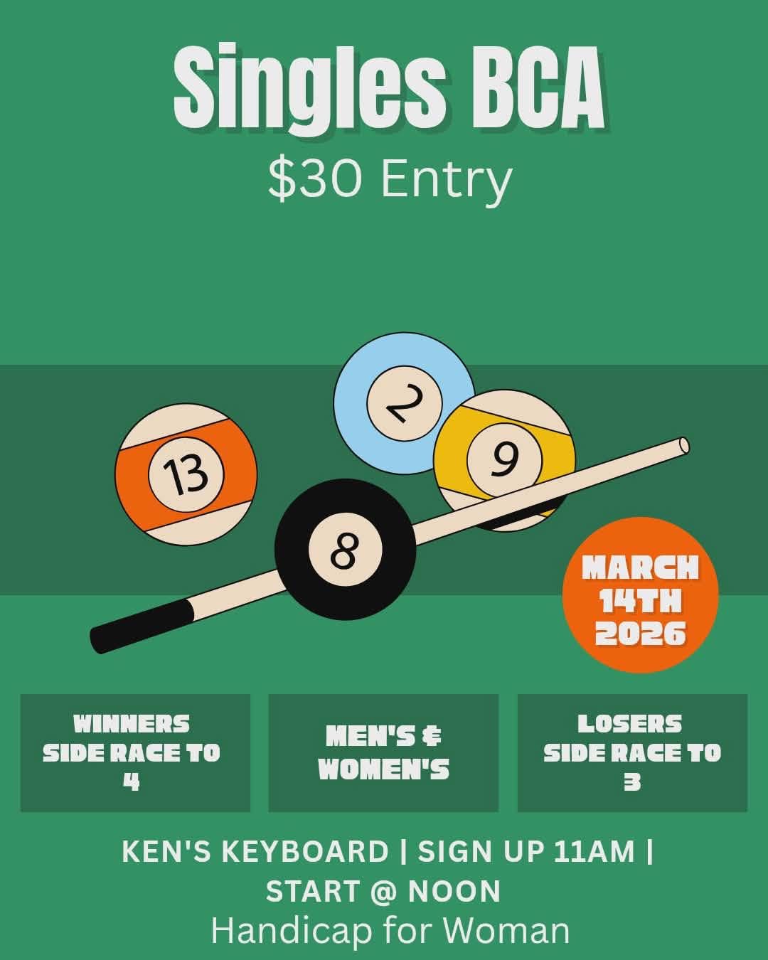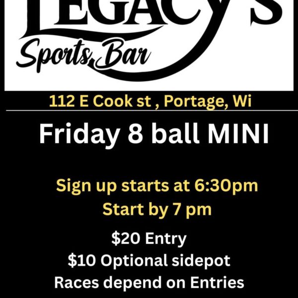 3/21 Singles 8-ball, Max 450, 575 and Open, legacy’s, portage