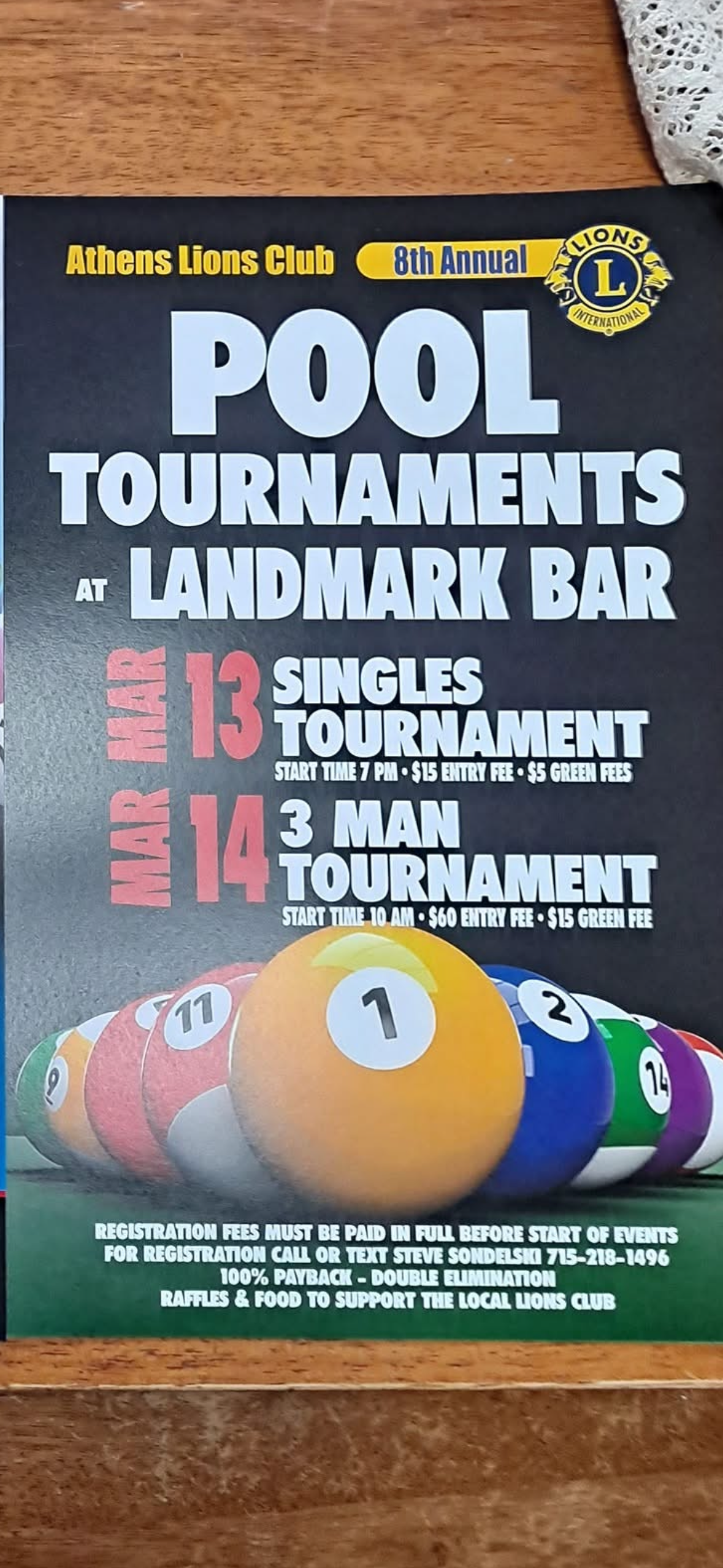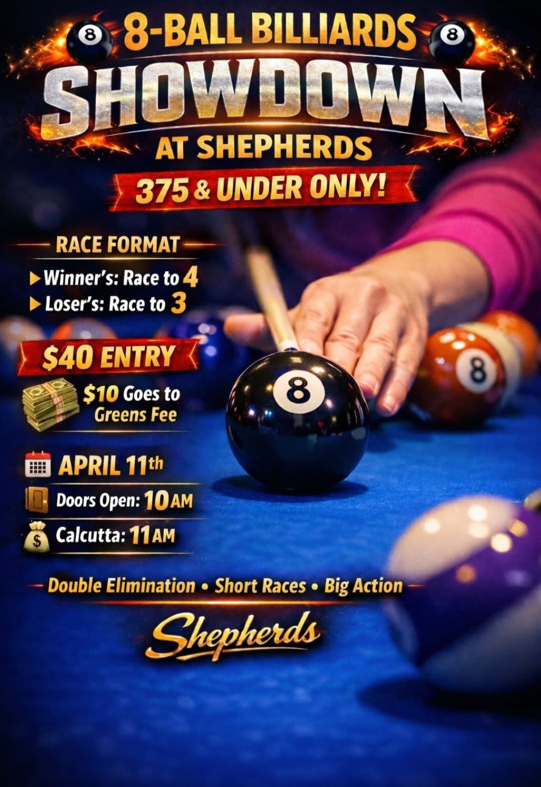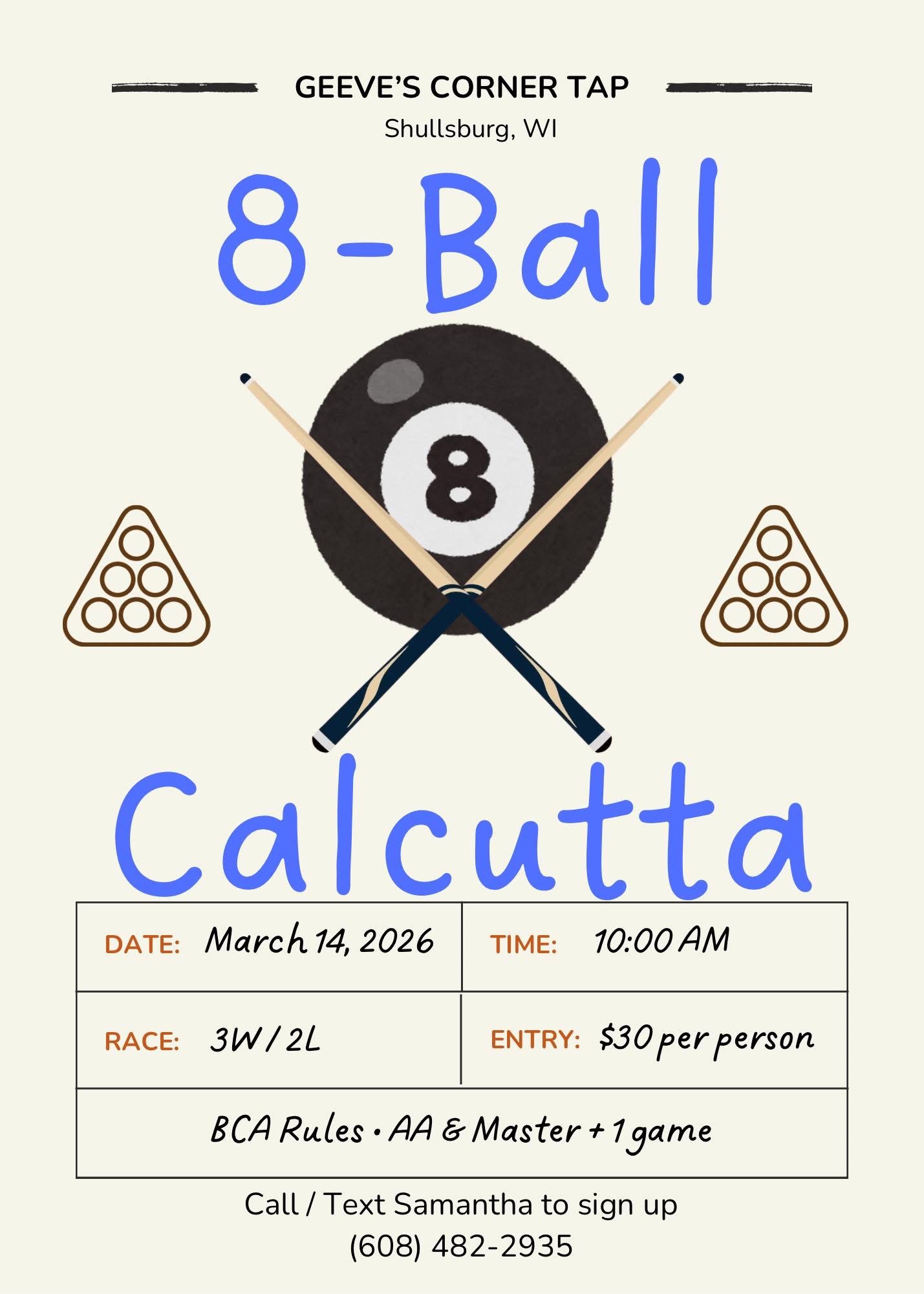 3/21 Singles 8-ball, Max 450, 575 and Open, legacy’s, portage