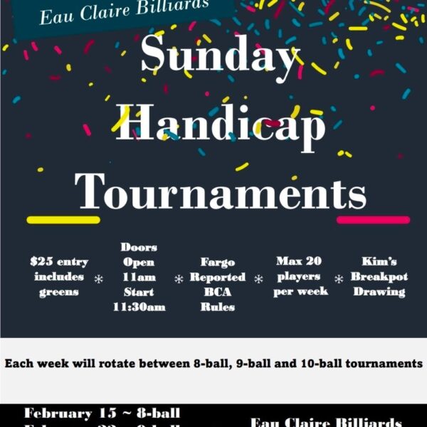Sundays, Handicapped Singles, Eau Claire Billiards