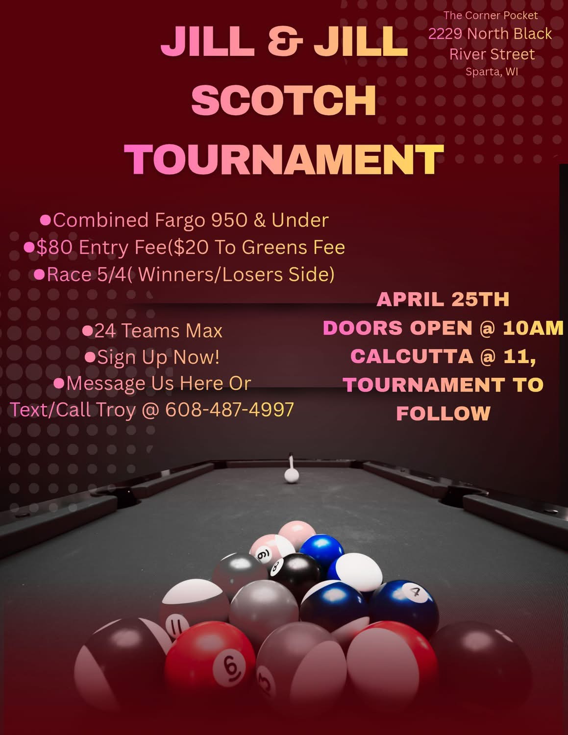 4/25 Women’s Scotch Doubles 8-ball, Max 950, the Corner Pocket, Sparta