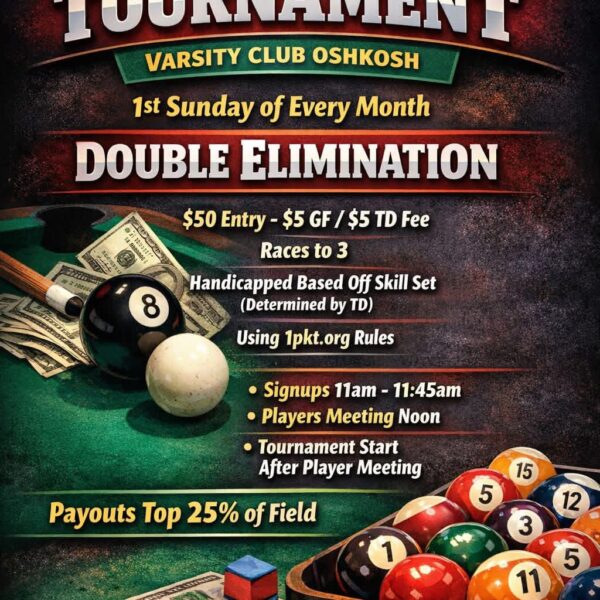 FRIDAYS – Short Race 8-Ball, The Varsity Club, Oshkosh