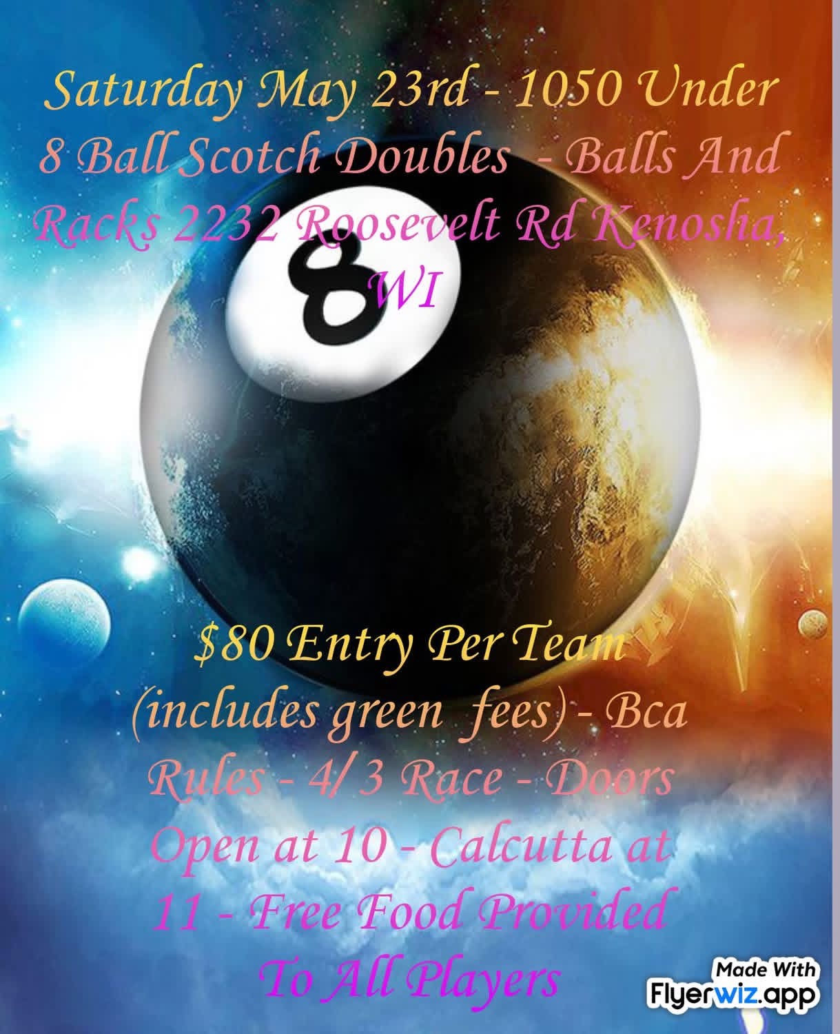 6/20 3-Person Team 8-ball, Max 1450, Balls and Racks, Kenosha
