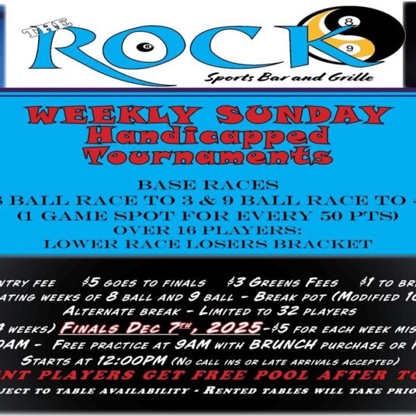 SUNDAYS – Handicapped 8/9-Ball, The Rock, Sun Prairie