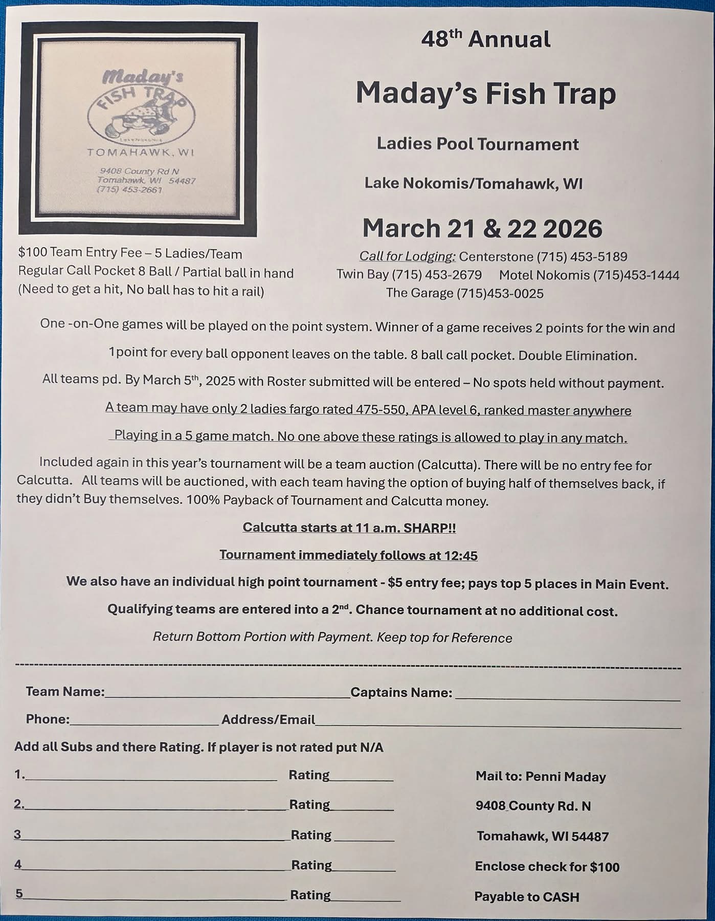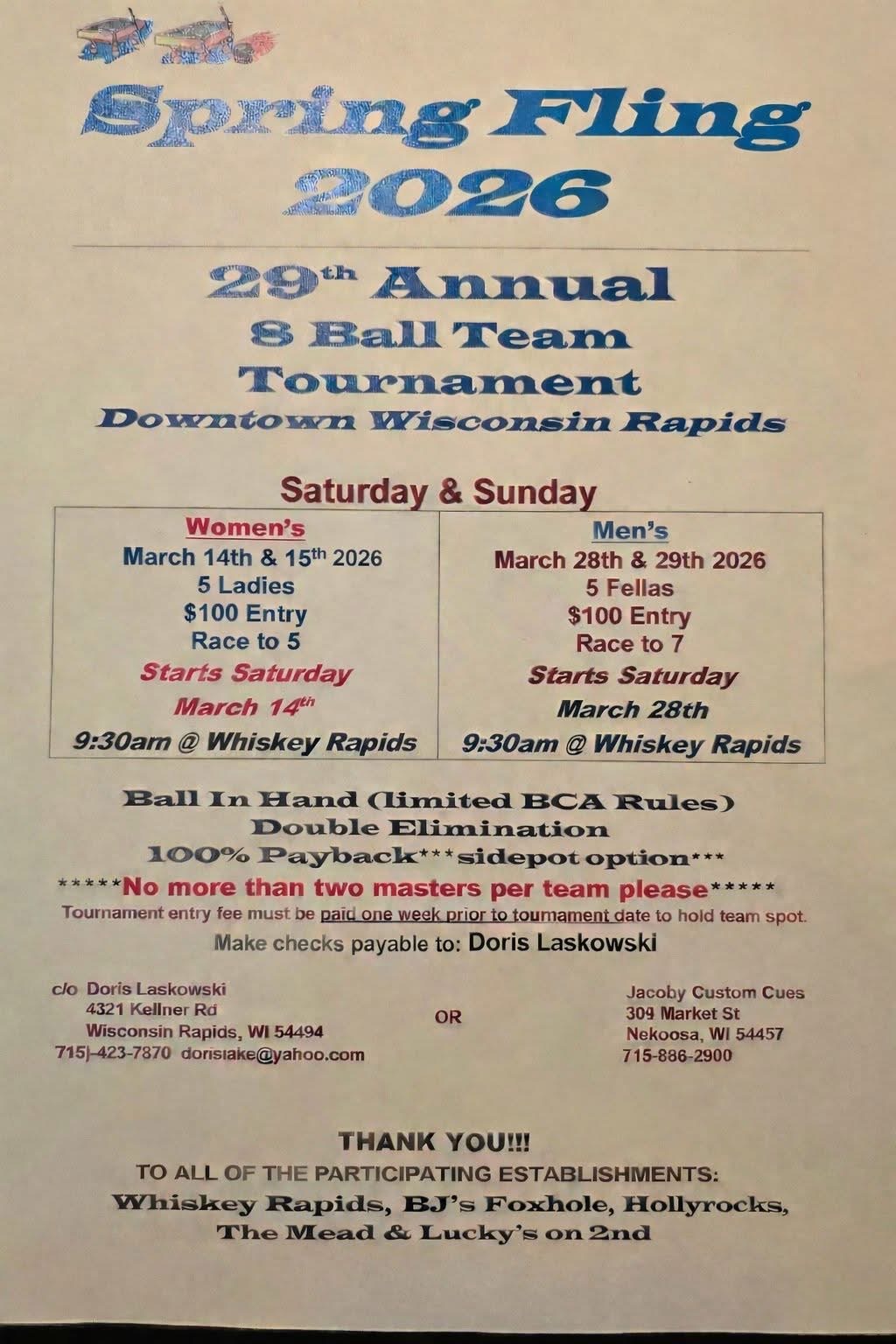 3/28-29 5-Man Team Spring Fling, Whiskey Rapids, WI Rapids