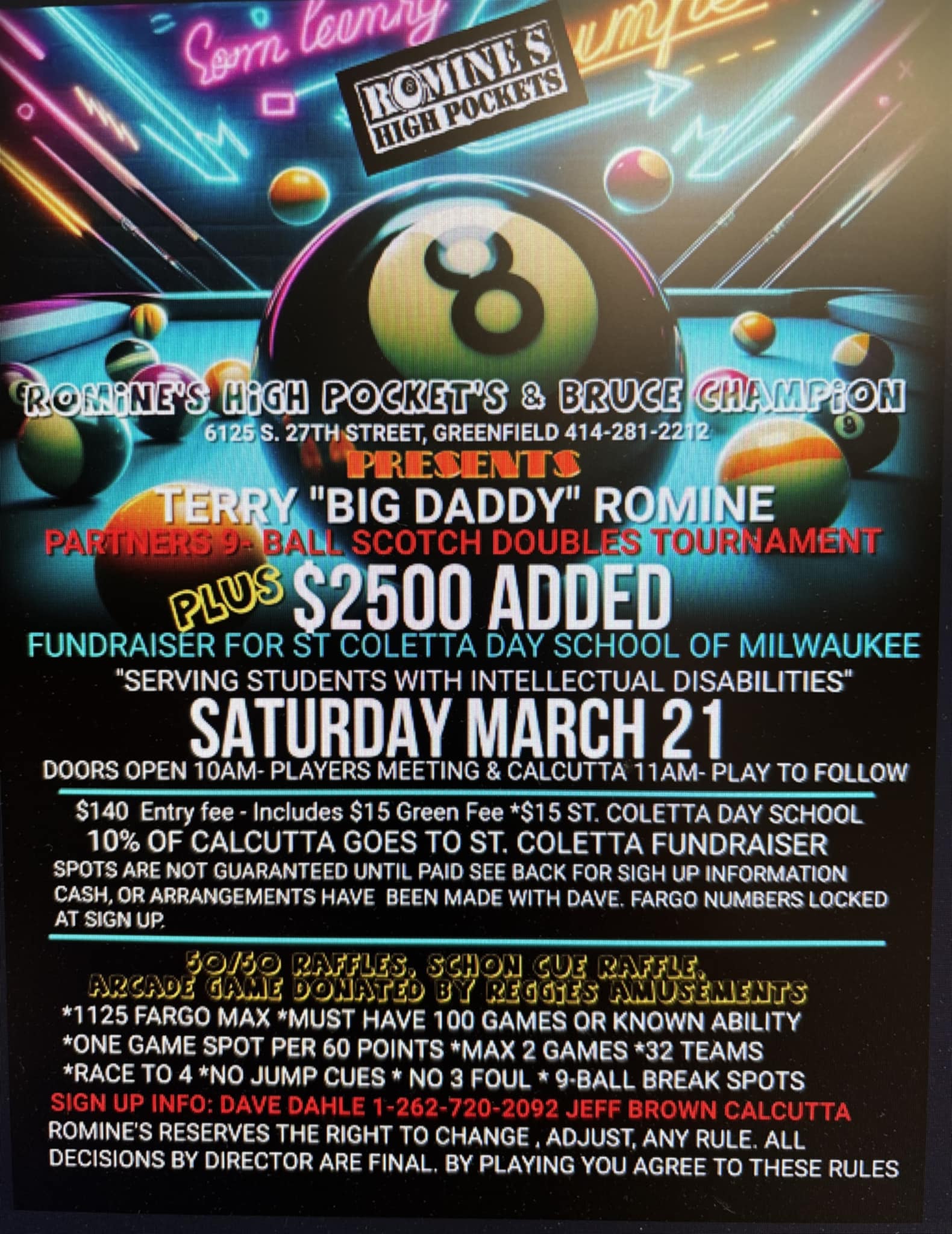3/21 Partners 9-ball, Max 1125, Romine’s, Greenfield