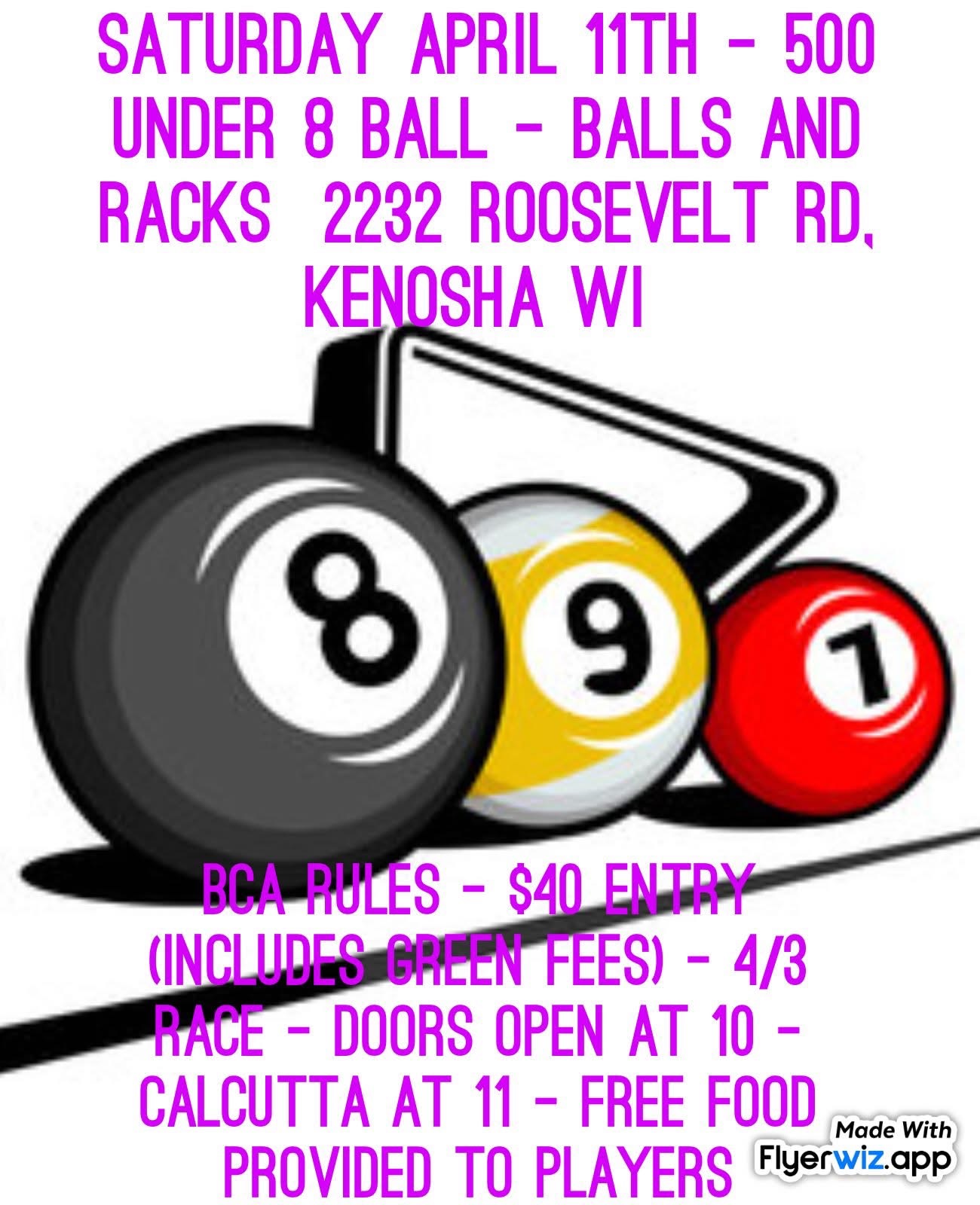 4/11 Singles 8-ball, Max 500, Balls and Racks, Kenosha