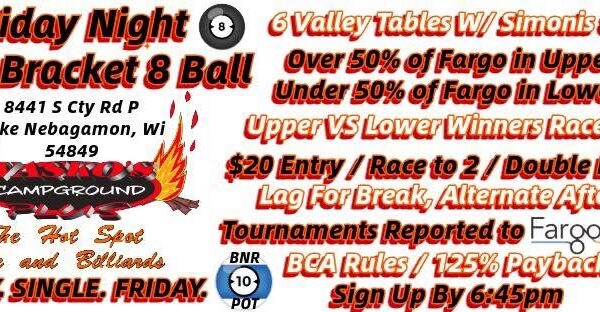 Fridays, Singles 8-ball, Waskos Campground, Lake Nebagamon,