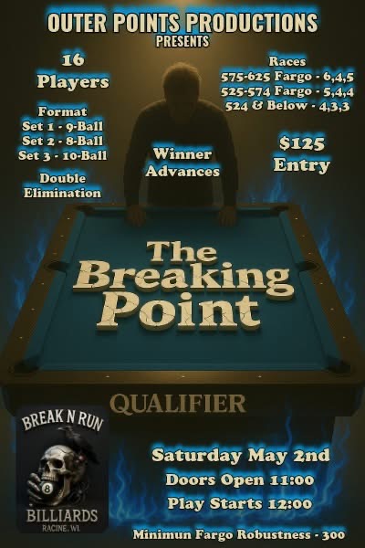 5/2 Singles Qualifier, Break n Run, Racine