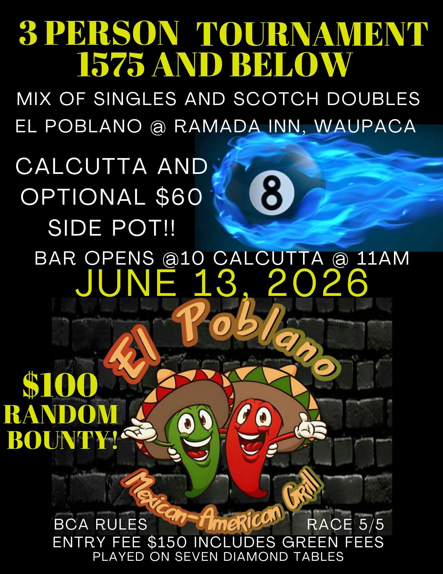 6/13 3-Person Team 8-ball, Max 1575, Ramada Inn, Waupaca
