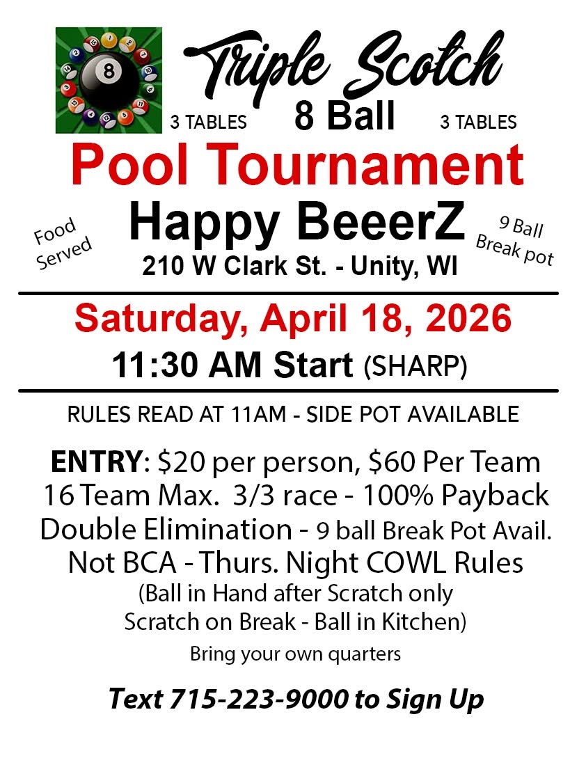 4/18 Triple Scotch 8-ball, Happy Beeerz, Unity