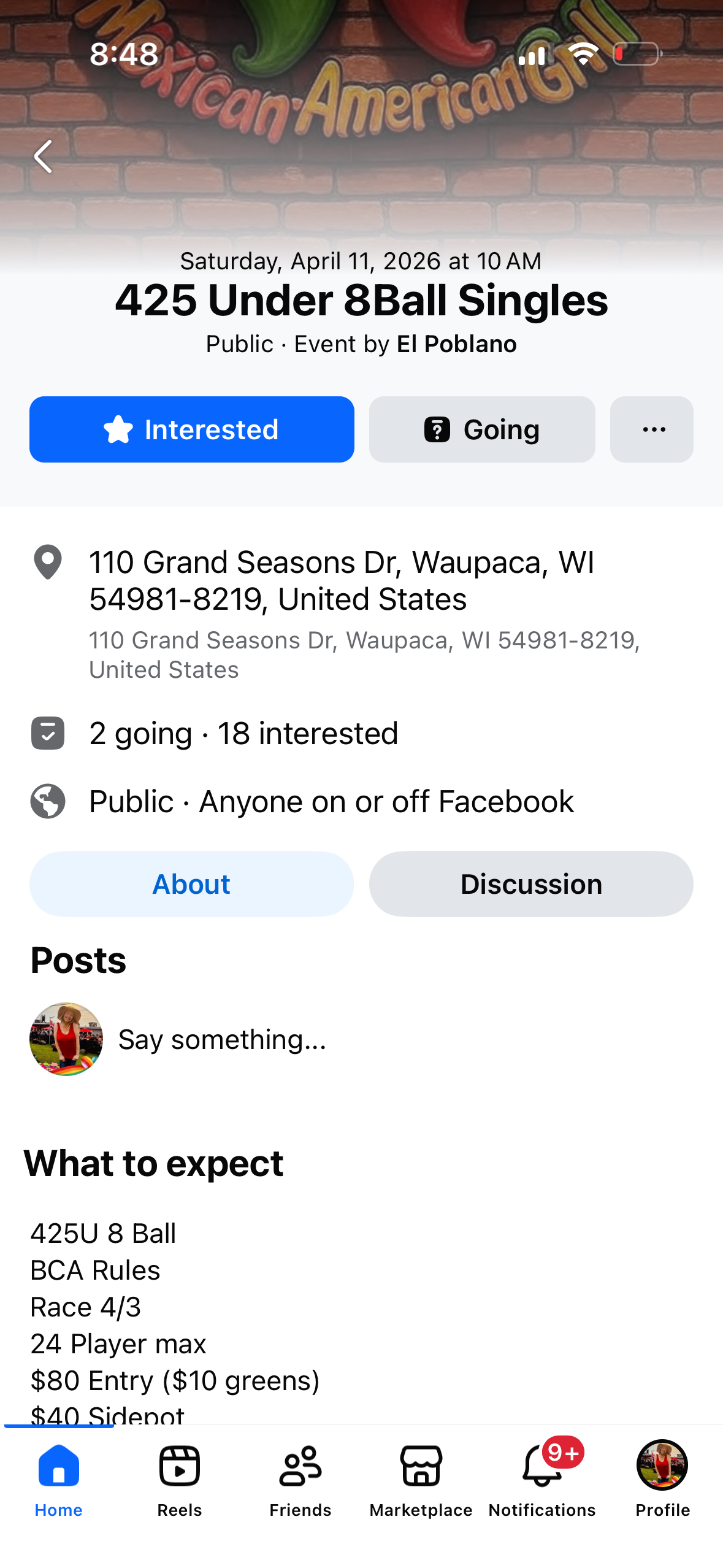 4/11 Singles 8-ball, Max 425, El Poblano, Waupaca
